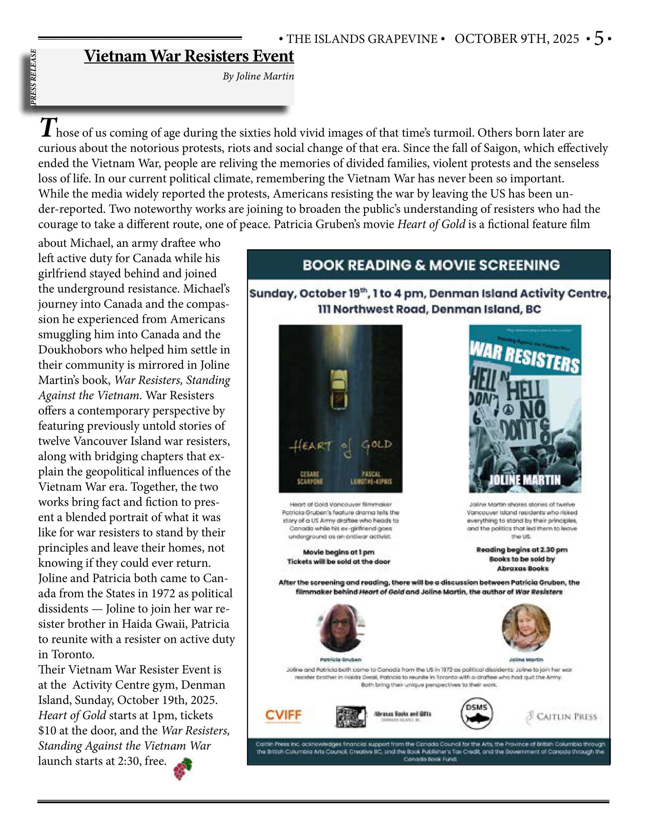 | Joline Martin shares stories of twelve Vancouver Island residents who risked everything to stand by their principles, and the politics that lead them to leave the US. |