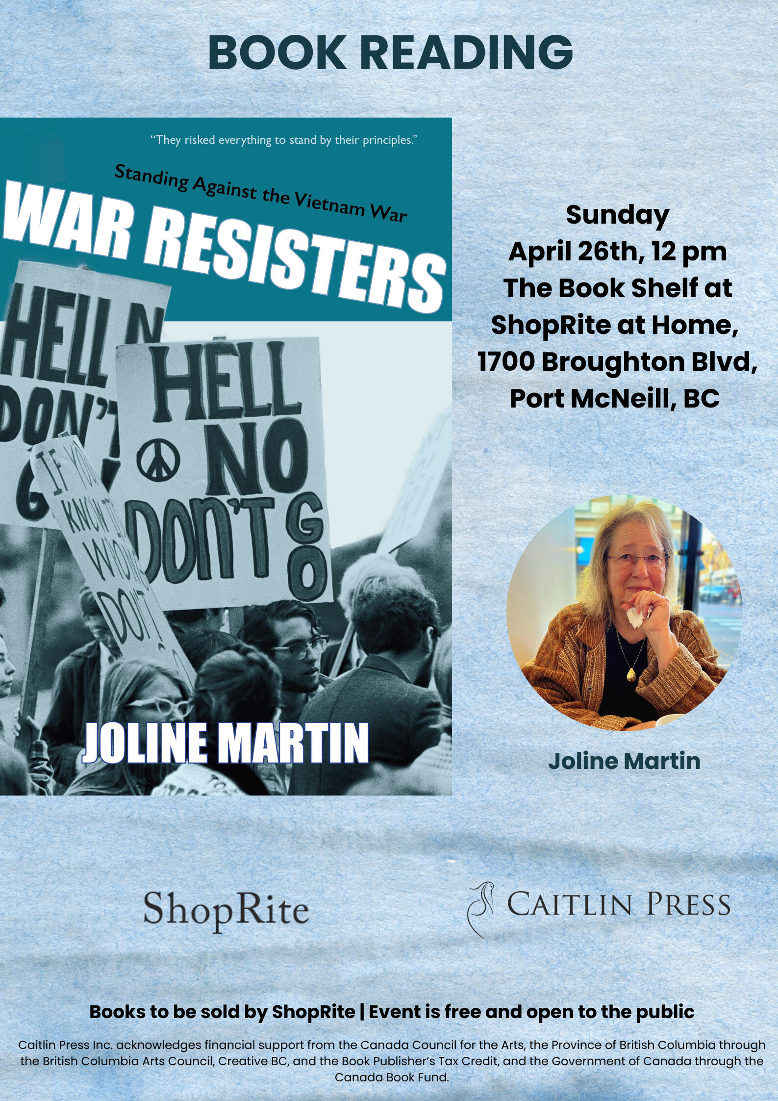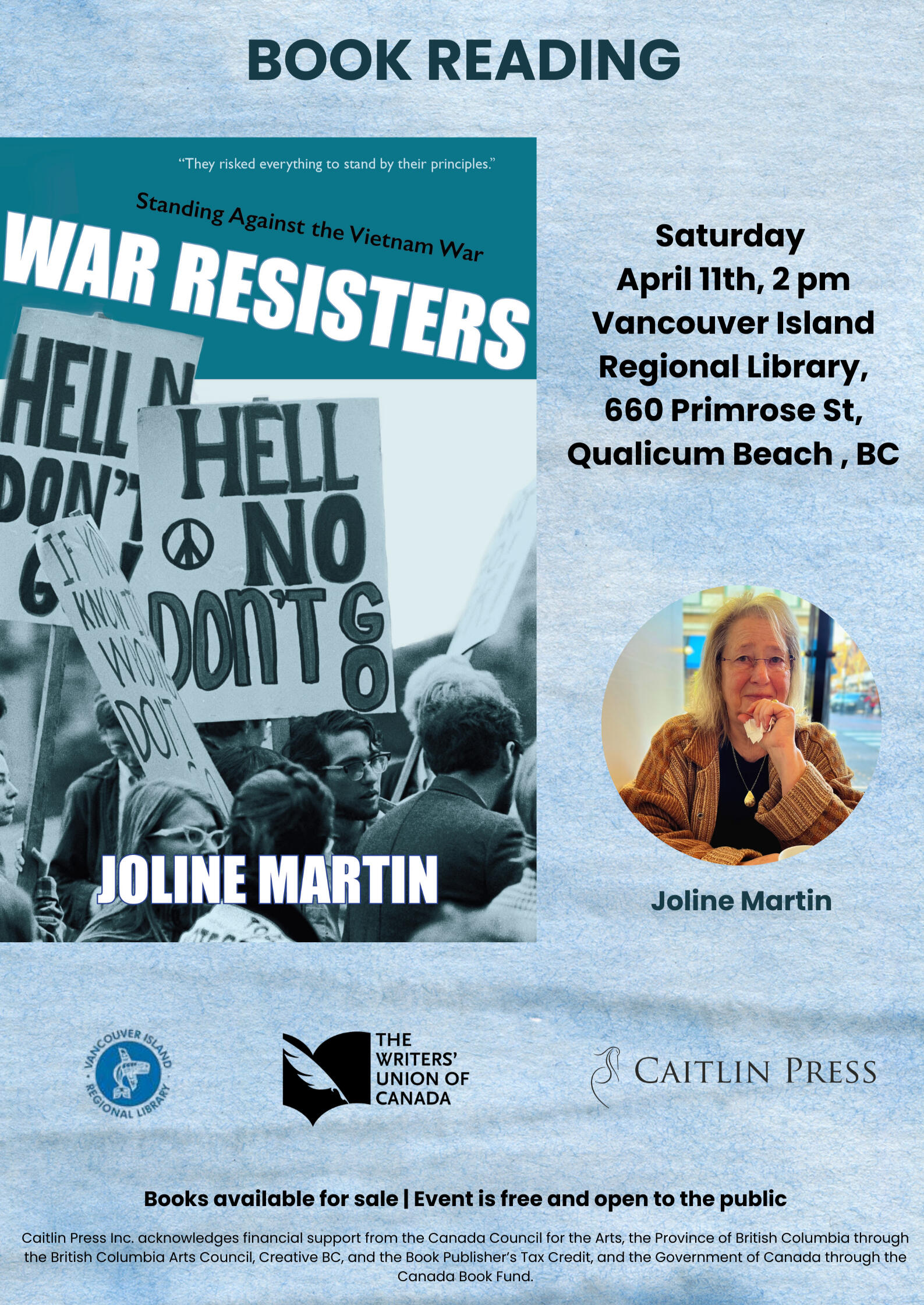 | Many of us who came of age in British Columbia during the Vietnam War knew and often befriended young men and women who escaped the fighting by migrating, often clandestinely, to Canada. In this intimate account, Comox Valley writer Joline Martin uniquely focuses on the draft resisters who came to Vancouver Island and became Canadians. |