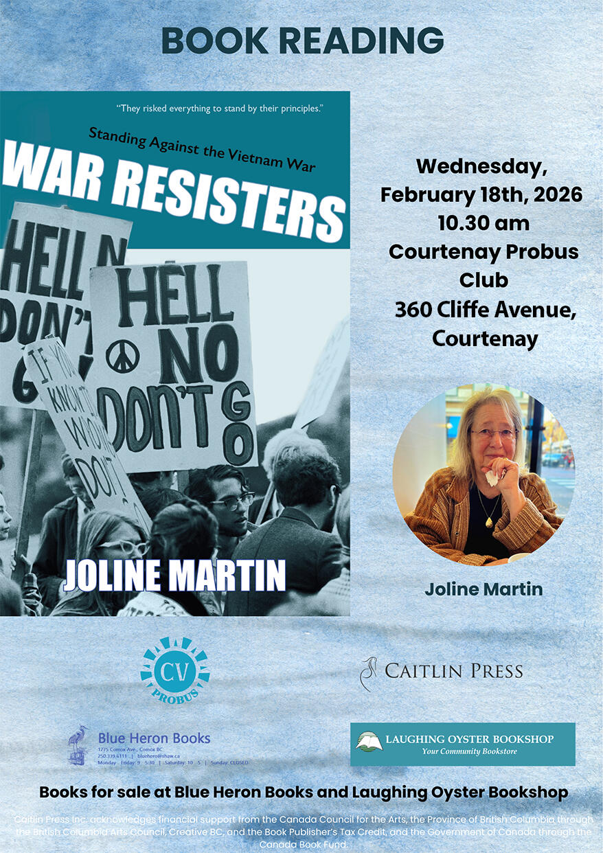 | Many of us who came of age in British Columbia during the Vietnam War knew and often befriended young men and women who escaped the fighting by migrating, often clandestinely, to Canada. In this intimate account, Comox Valley writer Joline Martin uniquely focuses on the draft resisters who came to Vancouver Island and became Canadians. |